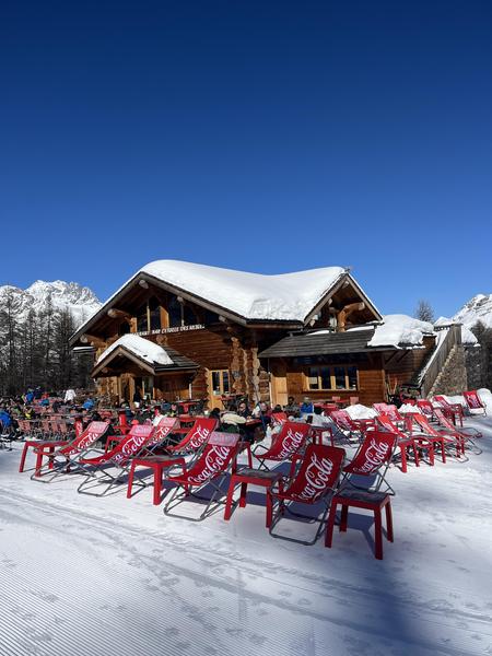 Warm up by the fireside in our wood log chalet, for a break, a warm apple and cinnamon juice, a crêpe or for lunch.