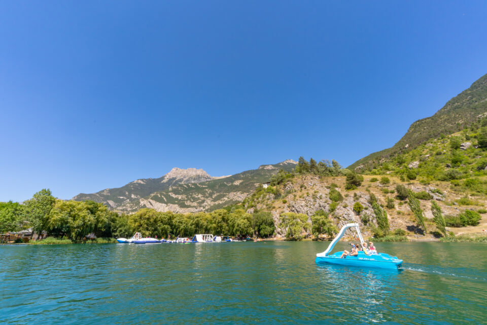 Paddle, pedal boats, inflatable water park, supervised swimming. Perfect for cooling off, relaxing and moving around a bit. Shaded areas for naps, electric barbecues to end the day.