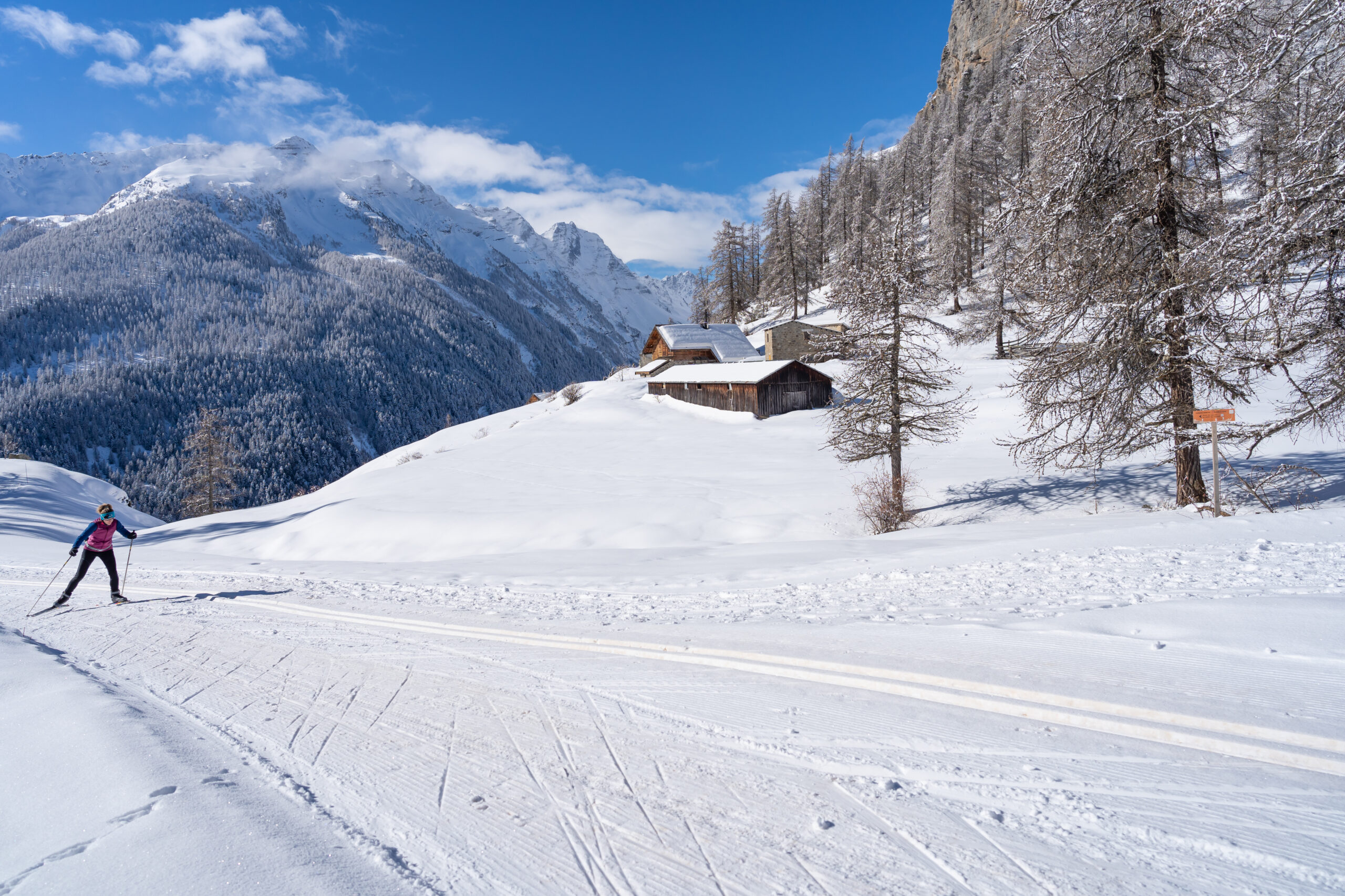 The Puy Saint Vincent Nordic area consists of 5 marked trails (without artificial snow) totalling nearly 29 km of cross-country skiing, in addition to 9 km of access routes between the 1400, 1600 and 1800 resorts, for a complete loop in classic or skating.
