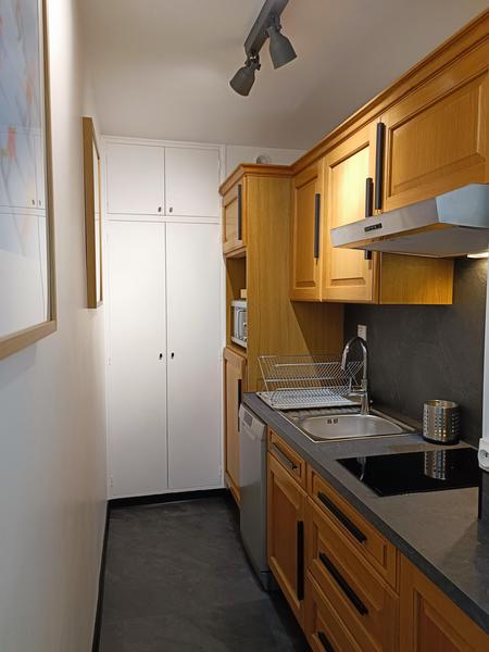 Une entrée avec placard, séjour, une cuisine aménagée et équipée, une chambre, une salle de douche avec WC, un casier à skis, un casier à chaussures, un stationnement sur l parking fermé de la résidence.