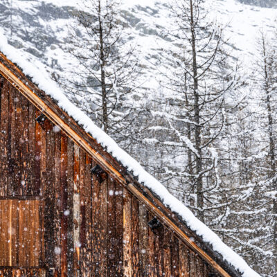 Silenzio, neve, cime. In inverno, Ailefroide diventa un rifugio preservato, accessibile solo a piedi. Al posto della strada, un lungo nastro bianco: qui l’accesso è con gli sci d’alpinismo o con le ciaspole, sempre con cautela… e preferibilmente con una guida alpina.