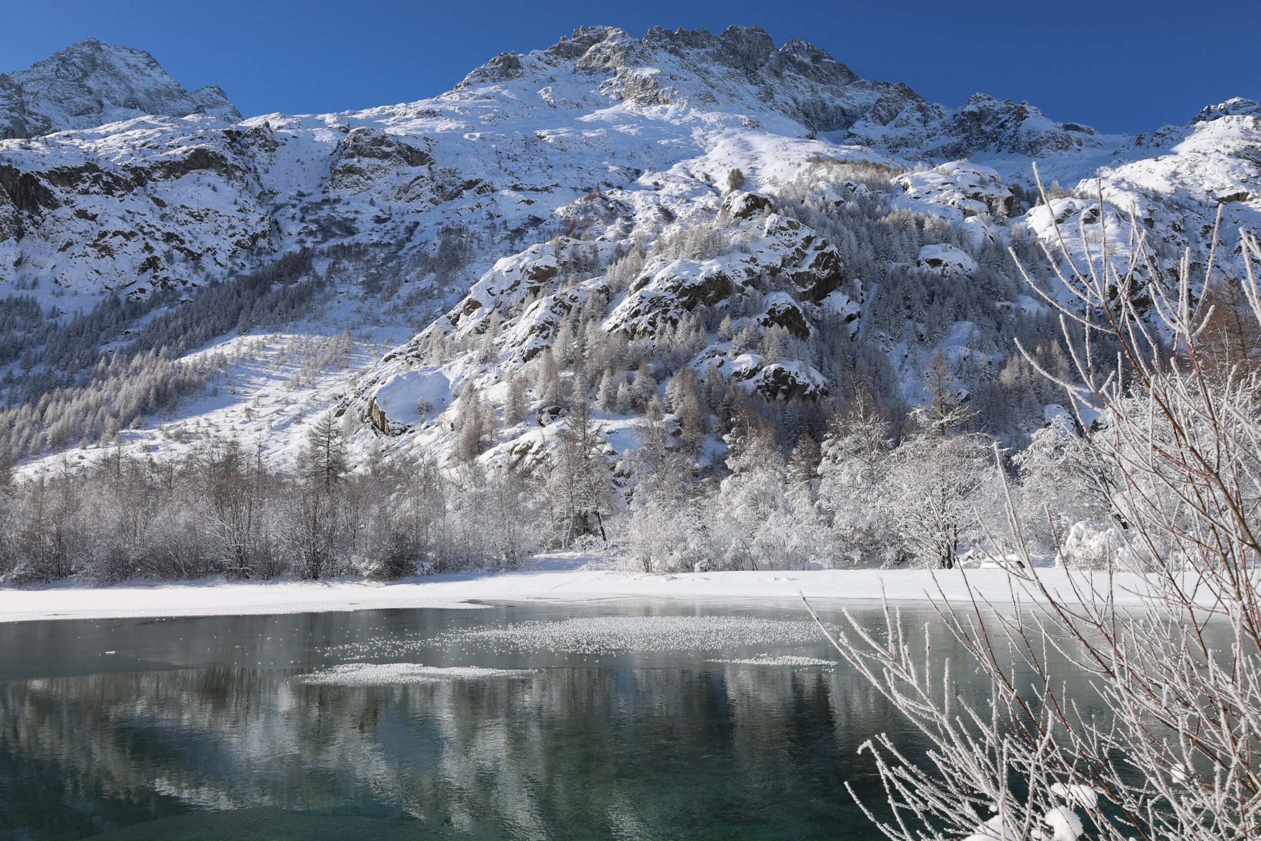 Je commence souvent en bas, vers Vallouise ou L’Argentière-la-Bessée. Marcher le long du Gyr, quand il fume un peu au petit matin, que tout est calme et que la montagne est déjà blanche au-dessus. L’hiver, le silence est différent. Plus épais.
